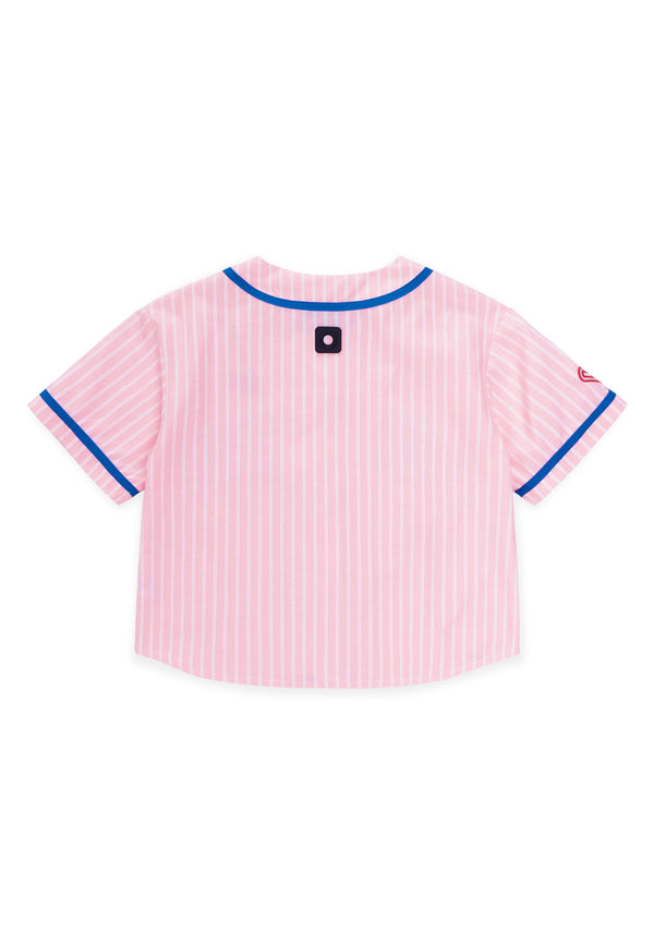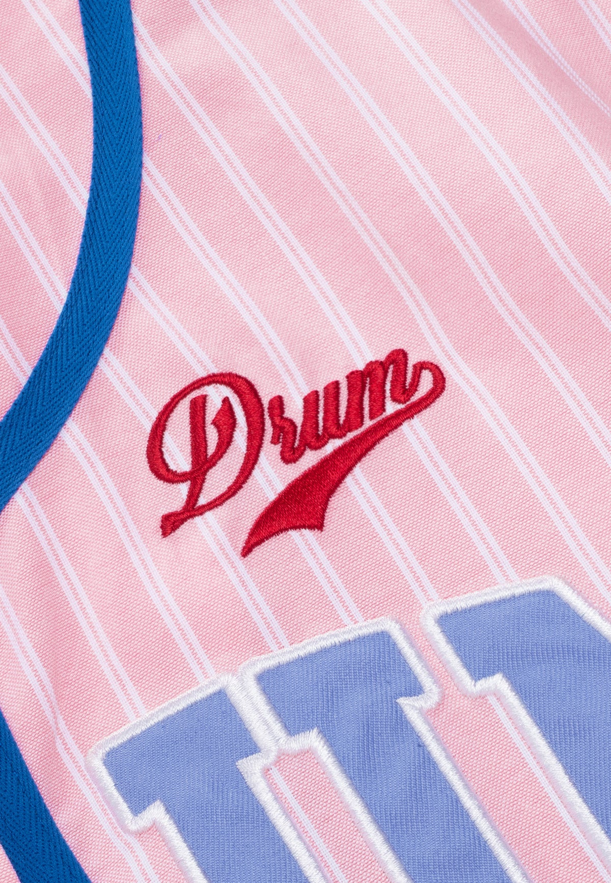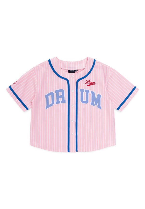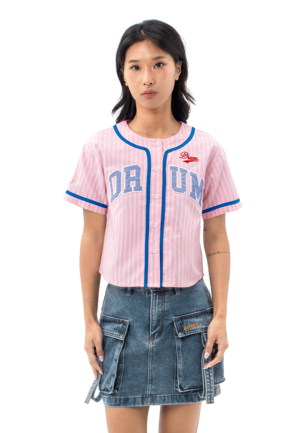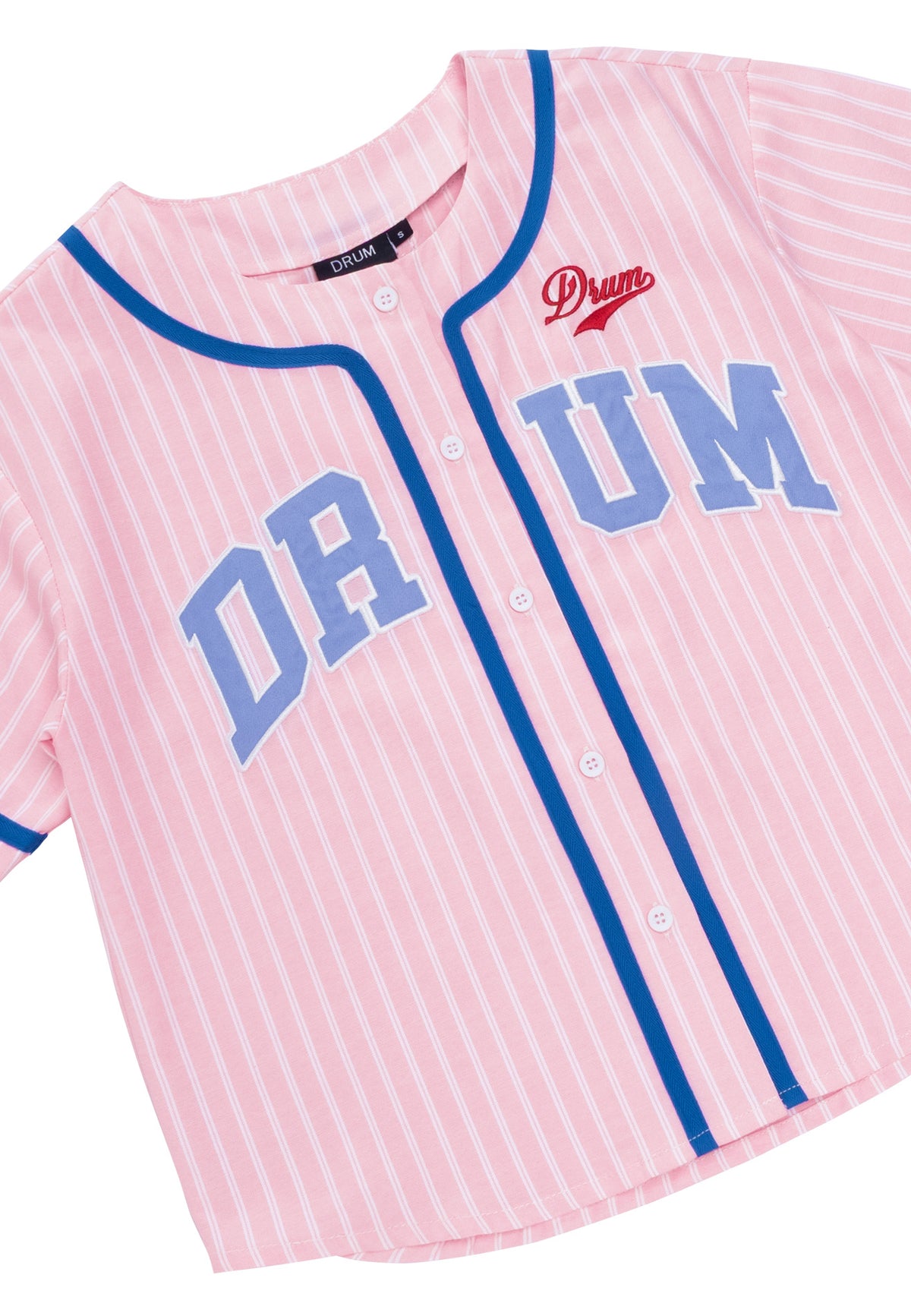 DRUM S. Ladies Stripe Print Baseball Shirt- Pink