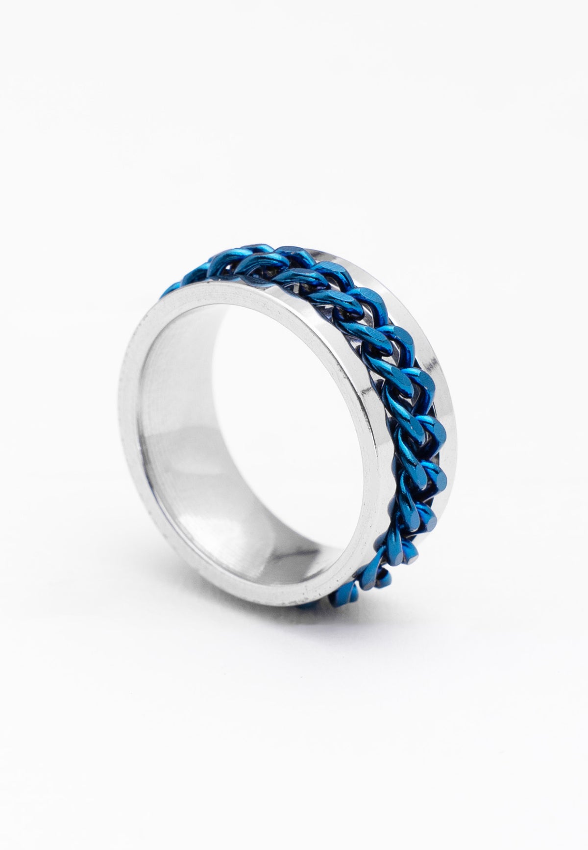 Rotatable Blue Mid Chain Stainless Steel Ring
