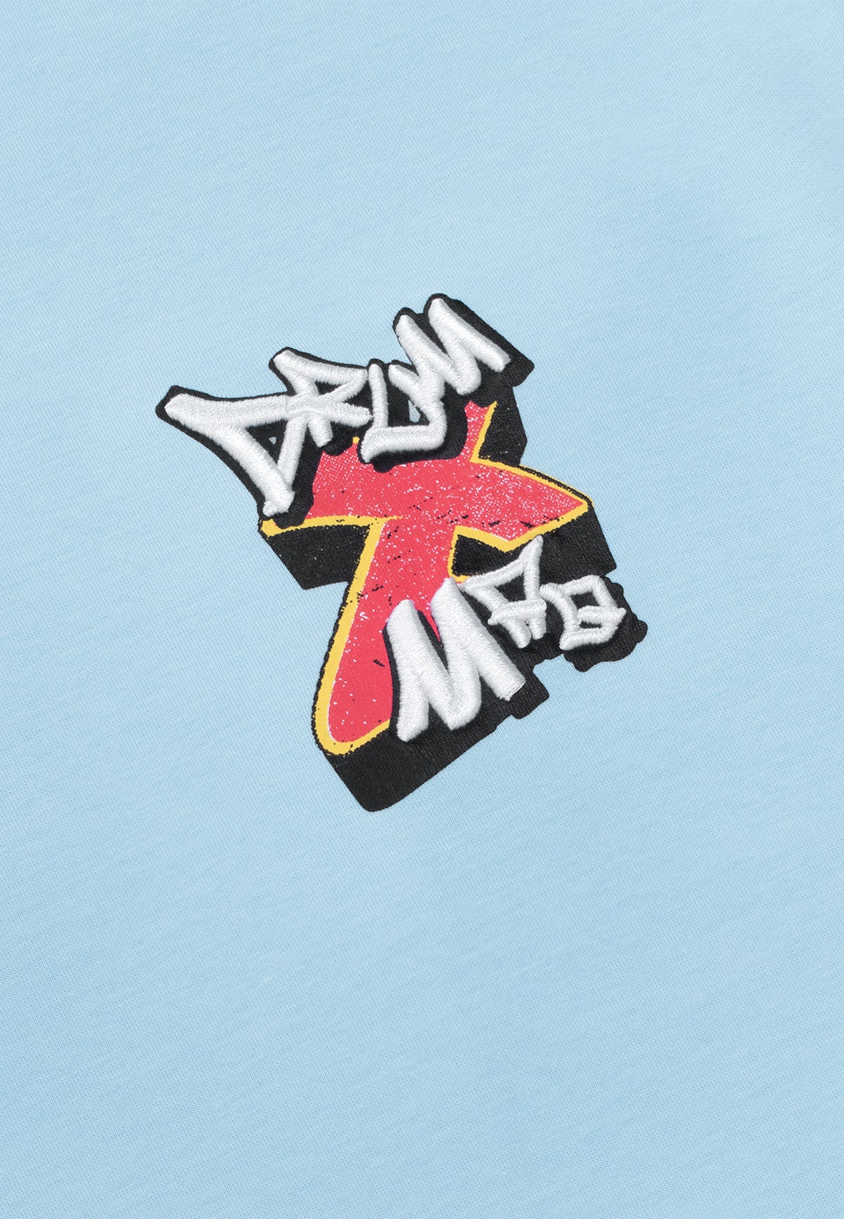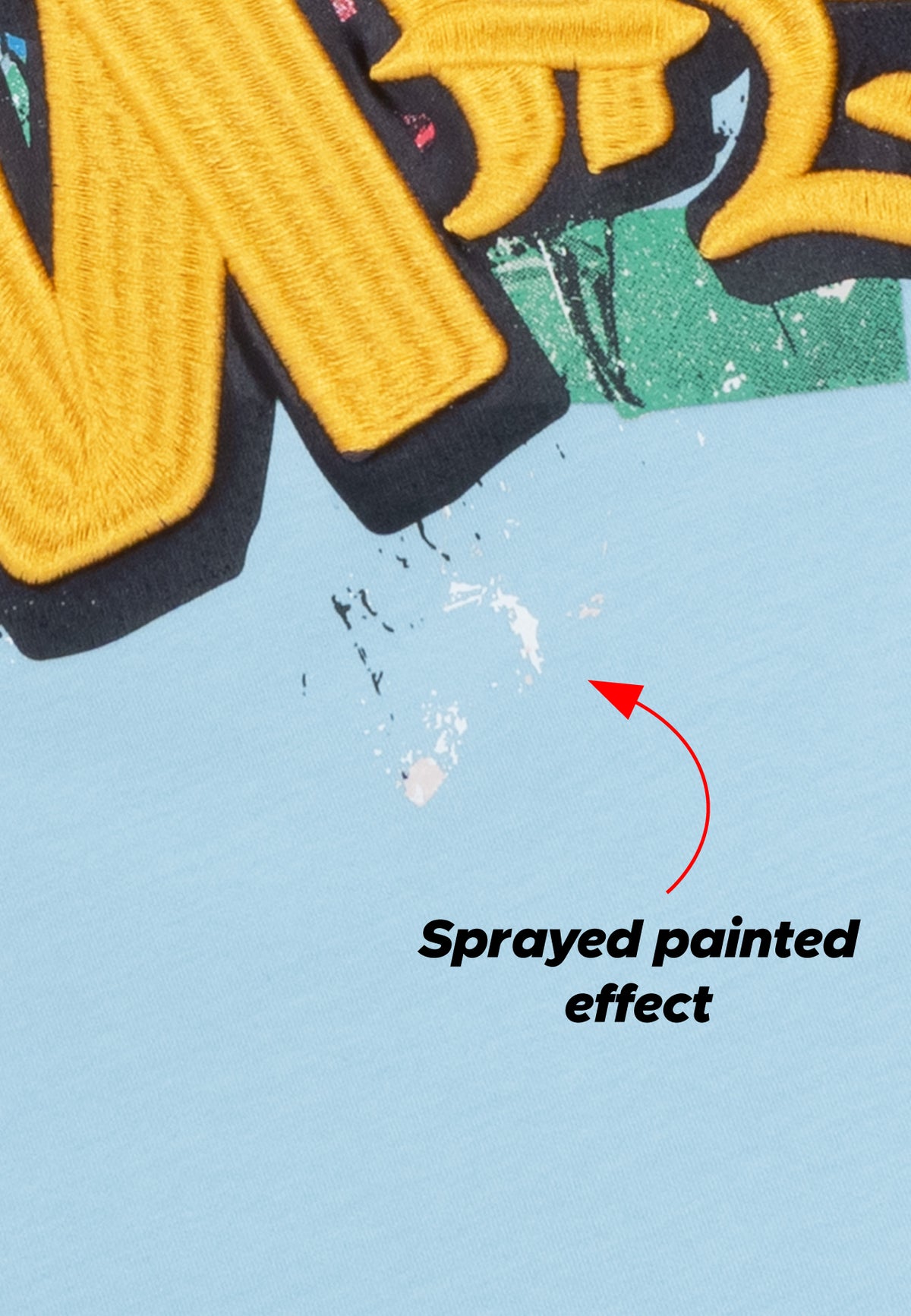 -Graffiti print with heavy DRUM X MAQ embroidery effect