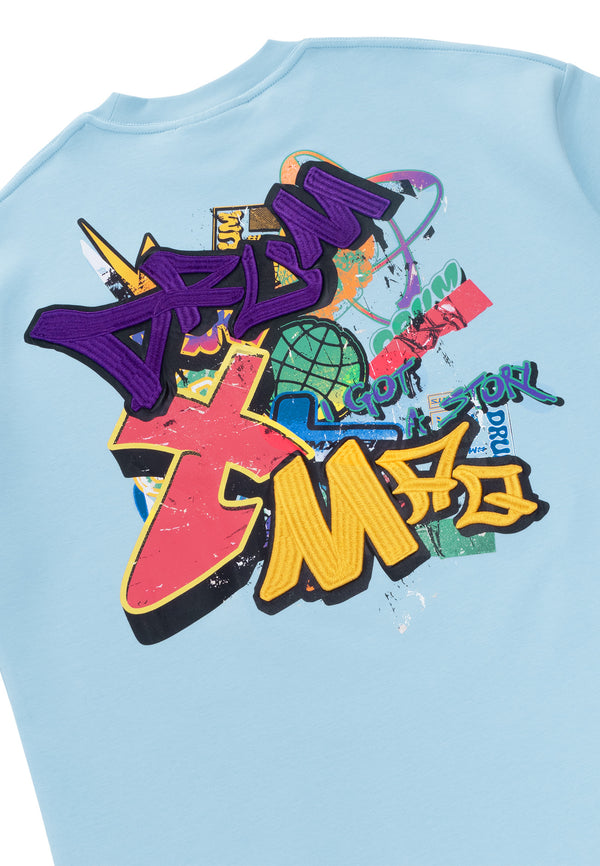 DRUM X MAQ I Got A Story Graffiti Oversized Tee- Light Blue