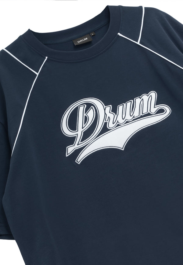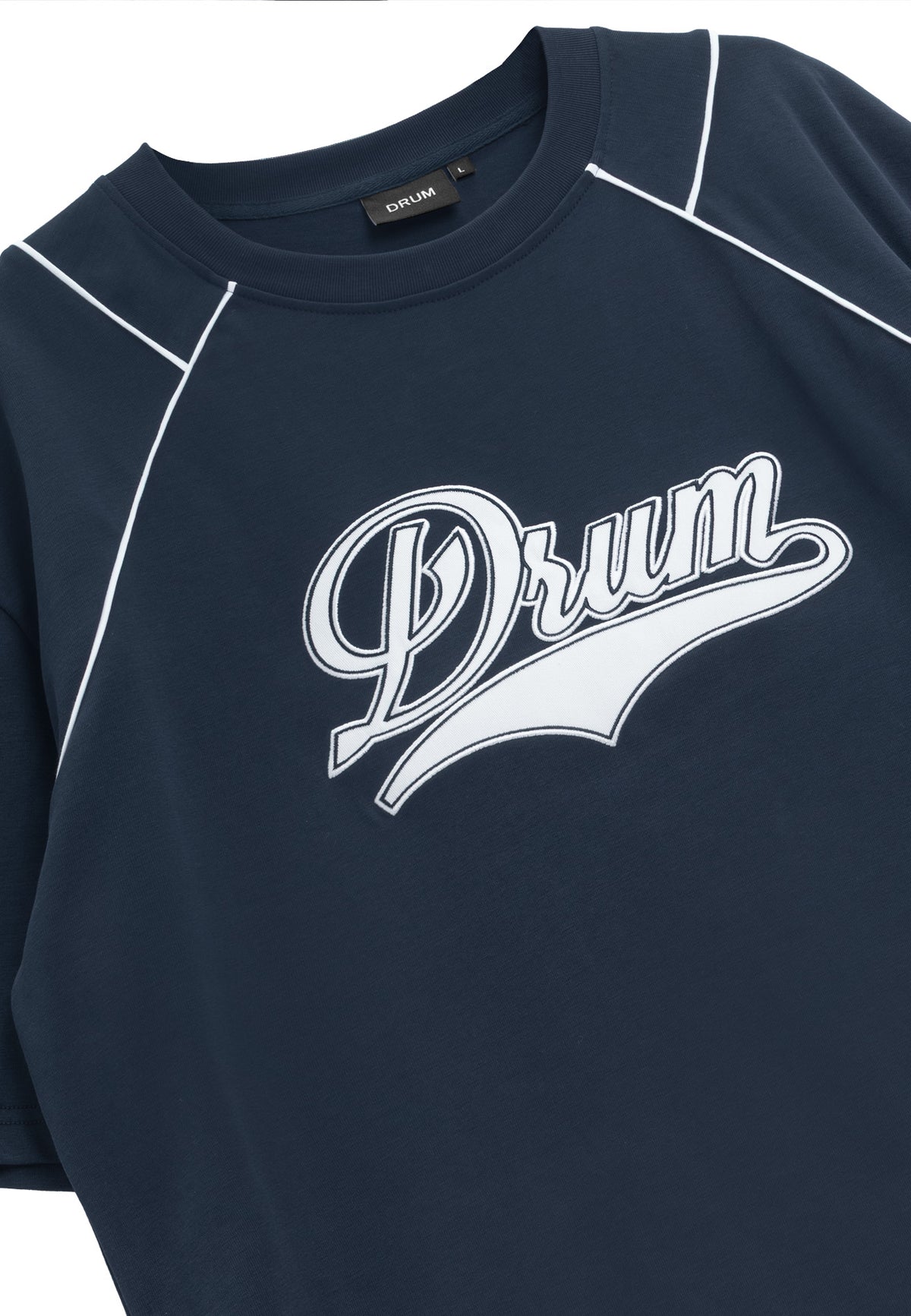 - Front DRUM logo applique embroidery, back vertical slogan embroidery