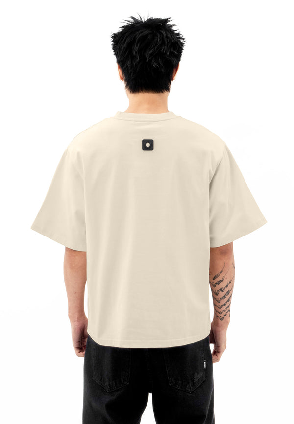 DRUM S. Applique Logo Oversized Boxy Tee- Light Khaki