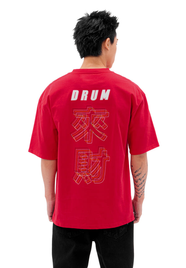 DRUM S. Money Coming Embroidery Oversized Tee- Red