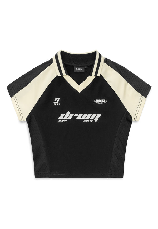 DRUM S. Women Cut & Sew Details Polo Crop Top- Black