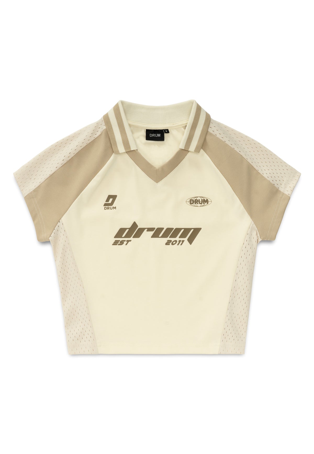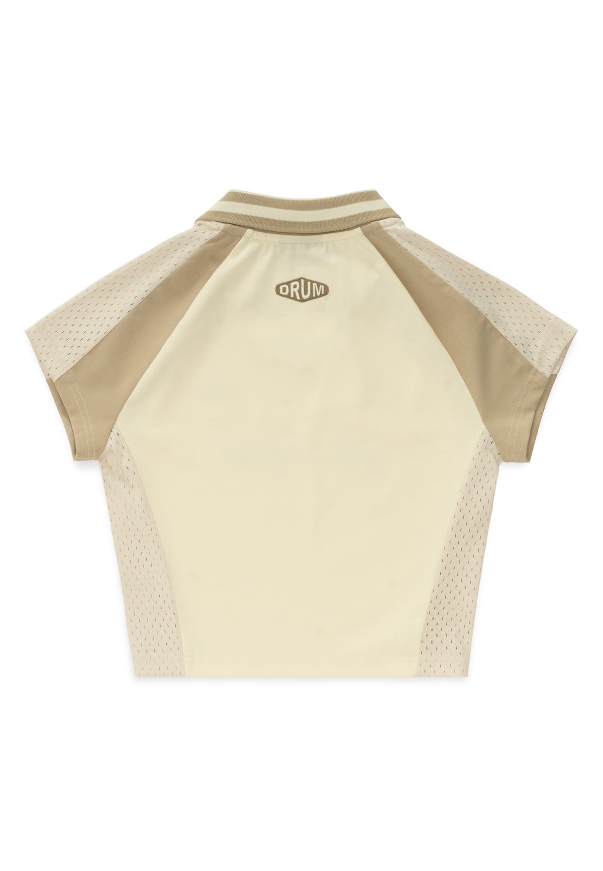 DRUM S. Women Cut & Sew Details Polo Crop Top- Light Khaki