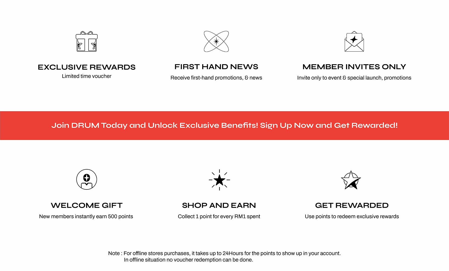 Be DRUM Member and enjoy the unbeatable benefits. Sign up now and get rewarded!