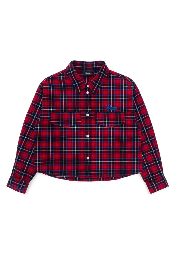 DRUM S. Long Sleeve Plaid Crop Shirt- Red
